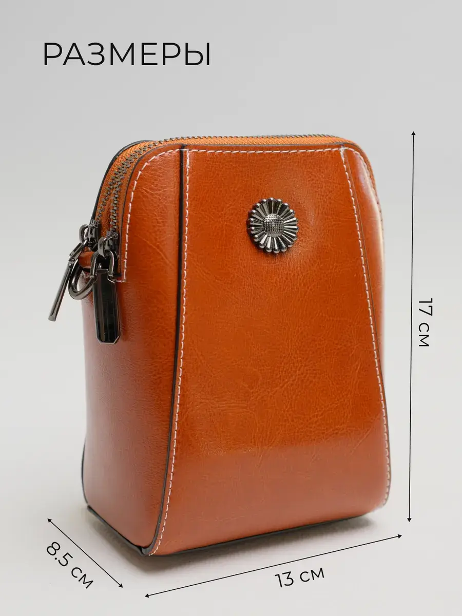 Популярная уличная сумочка через плечо выполнена из 100% натуральной кожи с плотной водонепроницаемой фактурой, что придает изделию статусный вид, обеспечивает жесткую форму и защищает мобильный телефон от царапин и влаги в любую погоду, будь то весна, лето, осень.