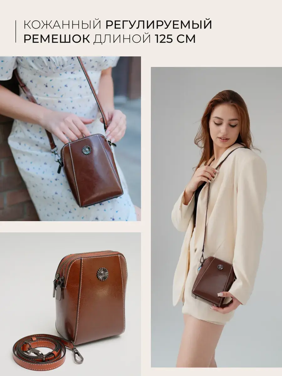 Молодежная плечевая сумка коричневого цвета для смартфона станет крутым и функциональным подарком девушкам, любимым и близким на день рождения, 8 марта и любой праздник.